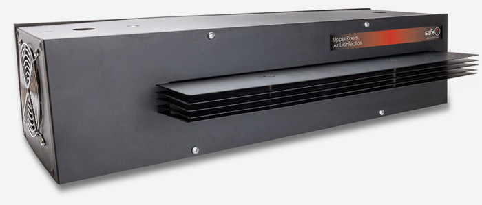 Safe-T GuardUV Germicidal Ultraviolet Air Purifier destroys airborne pathogens by generating a controlled region of germicidal UV light in the upper regions of a room. Pathogenes are drawn through the UV lamp chamber, exposing them to high-intensity germicidal UV light and then released into the upper air of the room where they are exposed to additional focused UV light. The UV light disinfection field is restricted to the upper area of the room (must be installed at least seven feet from the floor).